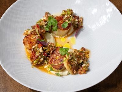 Recipe: Seared scallops with cauliflower and pancetta from The Americano Buckhead Reporter 3/3 4:00A Sarra Sedghi