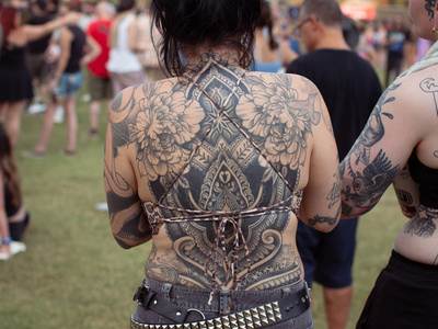 A concertgoer shows off their tattoo at Shaky Knees Music Festival Photograph by Martha Williams For its 12th year, Shaky Knees Music Festival moved both its location (from Central Park to Piedmont...